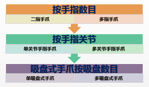 手指是直接与工件接触的部件。手部松开和夹紧工件, 就是通过手指的张开与闭合来实现的。机器人的手部一般有两个手指, 也有三个或多个手指,其结构形式常取决于被夹持工件的形状和特性。