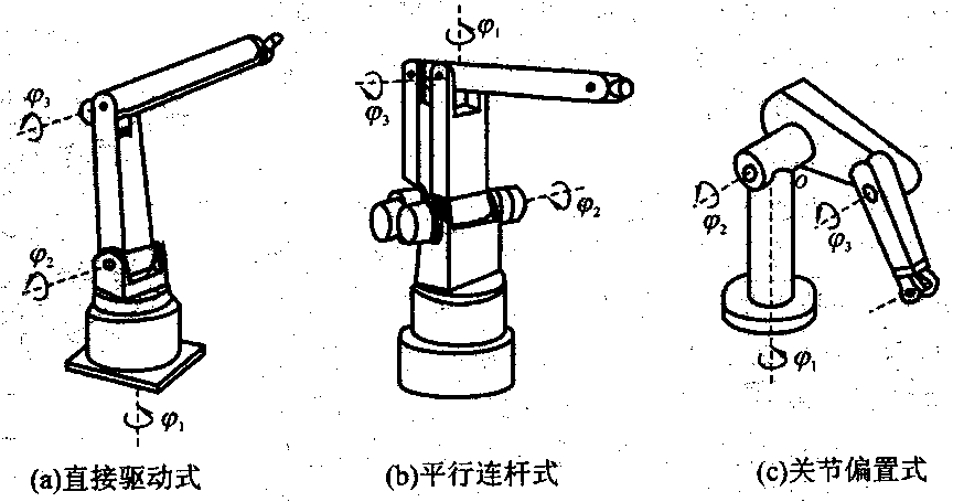 机器人腰转时将手臂缩回,减少了转动惯量;受结构限制,手臂不能抵达底部,减少了工作范围。