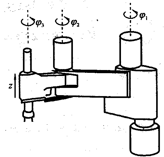 SCARA机器人:有3个旋转关节,其轴线相互平行,在平面内进行定位和定向。另一个是移动关节。这种结构轻便、响应快。
