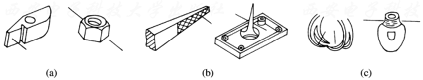 指端的形状通常有两类: V型指和平面指。如图2.51所示的三种V型指的形状, 用于夹持圆柱形工件。