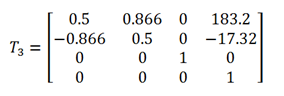 =30°时,则可根据平面关节型机器人运动学方程求解出运动学正解,即手部的位姿矩阵表达式