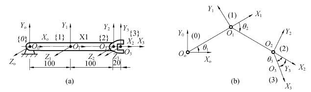 (1)根据机械手关节坐标设置确定出,由关节变量和参数确定机器人运动学方程: