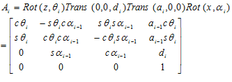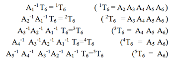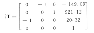 如此类推,对于六连杆机器人,有下列矩阵: