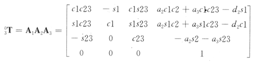同理,若矩阵表示第三连杆坐标系相对于第二连杆坐标系的齐次变换,则有: