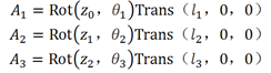 其中:—连杆1的坐标系相对于固定坐标系的齐次变换矩阵;