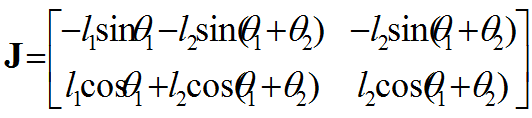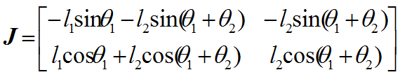 由前面推导知,二自由度机械手的速度雅可比为:
