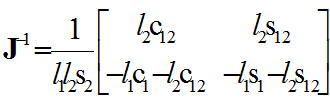 若对雅可比矩阵进行运算,则2R工业机器人的雅可比写为: