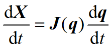 对式dX=J(q)dq左、右两边各除以dt,得: