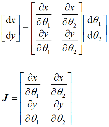 从J中元素的组成可见,J阵的值是θ1及θ2的函数。