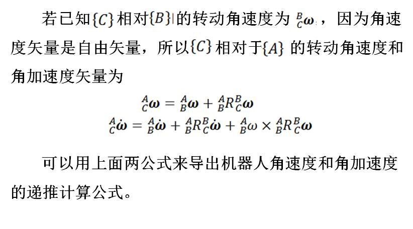 机器人一般由多个连杆通过转动或移动关节连接而成,为了用牛顿—欧拉法建立机器人的动力学方程,需要讨论机器人的瞬时运动状态,分析组成机器人的各连杆的速度和加速度及其运动的传递。