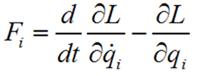 式中:Fi称为关节广义驱动力。如果是移动关节,则Fi为驱动力;如果是转动关节,则Fi为驱动力矩。