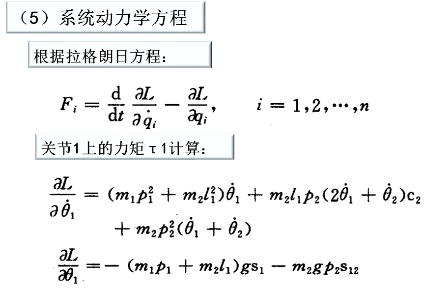 4)代入拉格朗日方程求得机器人系统的动力学方程。