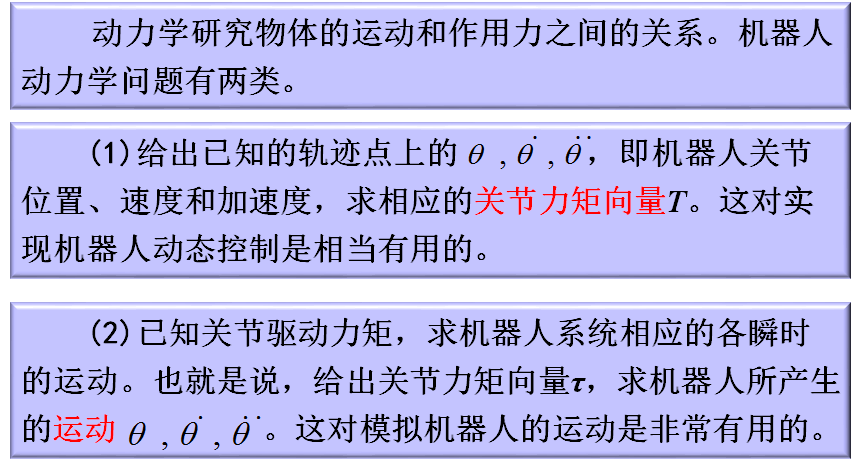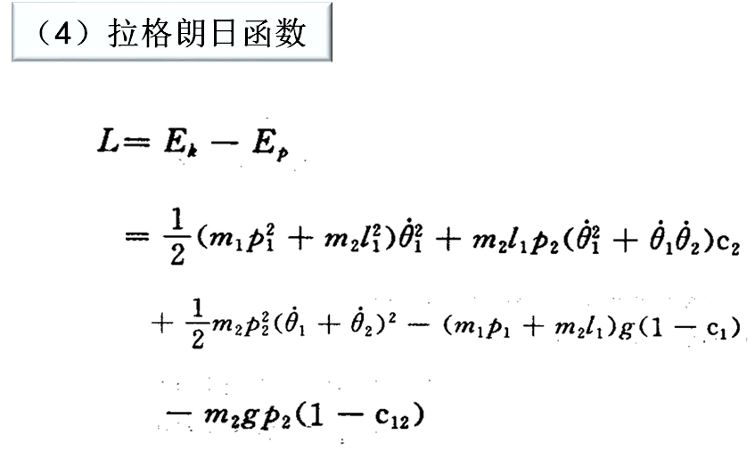 拉格朗日方法不仅能以最简单的形式求得非常复杂的系统动力学方程,而且具有显式结构,物理意义比较明确,对理解机器人动力学比较方便。