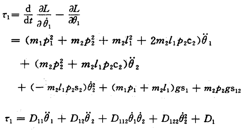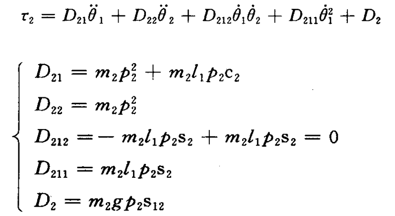 二自由度平面关节机器人动力学方程