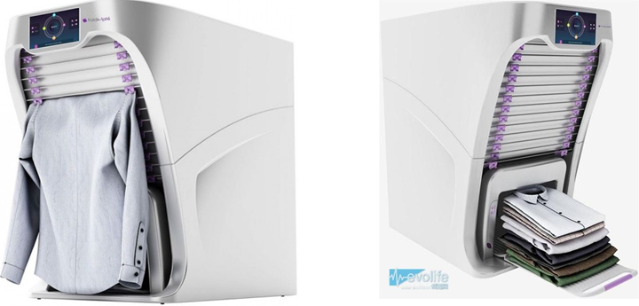 自动叠衣服的神器真的诞生了!它就是FoldiMate机器人,专长,叠衣服;爱好,还是叠衣服。该叠衣机能够一次性自动折叠10到15件衣服,并且能在叠衣过程中添加芳香剂或熨平褶皱部位。当你需要整理大量衣服时,只需将衣物放置在叠衣机的特制挂钩上,接下来的工作将会由它自动完成,如图5.1所示。FoldiMate叠一件衣服只需10秒钟,一次能处理20件,同时还可以做去皱处理呢。整理好的衣服的直角,简直能令毕达哥拉斯哭泣,如图5.2。
