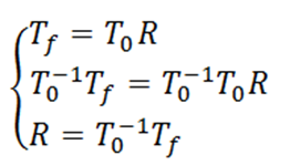 为实现一条直线轨迹,必须计算起始点和终止点位姿之间的变换,并将该变换划分为许多小段。起始点构形和终止点构形之间的总变换R可通过下面的方程计算: