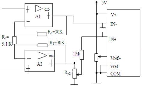 (5)最后测量RP2、RP3电阻值,并用固定精密电阻予以代替。RP1可引出表外调整。测量前先调整RP1,使显示器回零。