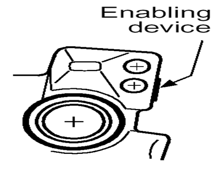 机器人在自动模式下,使能器无效。机器人在手动模式下,使能器有三个位置。起始为“0”,此时机器人电机不上电。中间为“1”,机器人电机能上电。最终为“0”,机器人电机不上电,必须回到起始状态才能再次使电机上电。