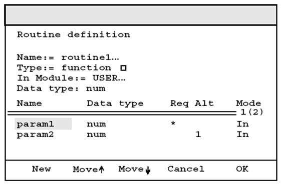 若要建立一个新例行程序,首先菜单键View中选择Routine,,然后点击功能键New,此时显示屏出现图12.43窗口。