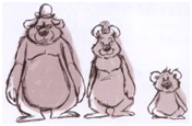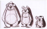 三只熊的剪影都是椭圆形,但在两两之间的大小和形状各不相同。这就在设计角色之前创建了尺寸上的对比。