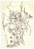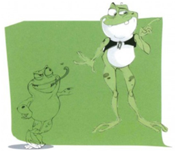 教师绘制示范:接近真实的青蛙角色和拟人化的站立青蛙角色