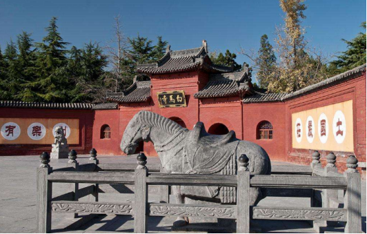 白马寺位于洛阳市东13公里处,号称“中国第一古刹”。公元64年,汉明帝刘庄夜梦金人,遣使西域拜求佛法。三年后,汉使用白马驮载佛经、佛像返回洛阳,汉明帝亲自迎接。第二年,明帝为铭记白马驮经之功,兴建了白马寺。这是中国最早的佛教寺院,号称“释源祖庭”。