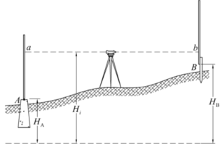 ①在水准点与待测设点间安置水准仪,读取已知水准点读数,计算视线高程。 ②视线高程减去待测设点高程计算待测设点应读数。 ③待测设点立尺,上下移动使读数等于应读数,在尺底标定测设位置。 举例:根据高程为188.199米的水准点C,测设附近某建筑物的地平±0标高桩,设计±0的高程为188.800米。在C点与±0标高桩间安置水准仪,读得C点标尺后视读数a=1.717米,问如何在±0标高桩上做出标高线? 解: