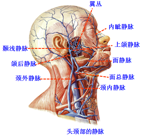 2.面部的静脉构成浅深两个网。浅网由面静脉和下颌后静脉组成,面静脉始于内眦部的内眦静脉,并与面动脉相伴行,下颌后静脉由颞浅静脉和上颌静脉合氏面静脉借面深静脉与翼丛相连。面静脉又经内眦静脉、眼上静脉和海绵窦相连。