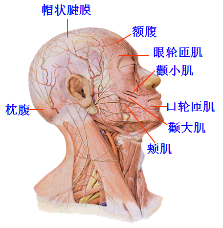 1.面部皮肤特别薄,筋膜不发达。面肌都是皮肌,它们都是环绕着自然孔、裂(口裂、眼裂和鼻孔等)进行安排,安排方式基本上有两种,即环绕孔裂的轮匝肌和放射安排的扩大肌,后者均是以一端起于骨骼,另一端止于皮肤,两者的动作互相协作,乃可行使孔,裂的开阖和各种表情。面部皮肤血液供应丰富,因此再生力特别强。随着皮肤的表情活动,面部有各种皱纹,作面部手术时应考虑依照这些皱纹作切口,以免破坏面部美观。