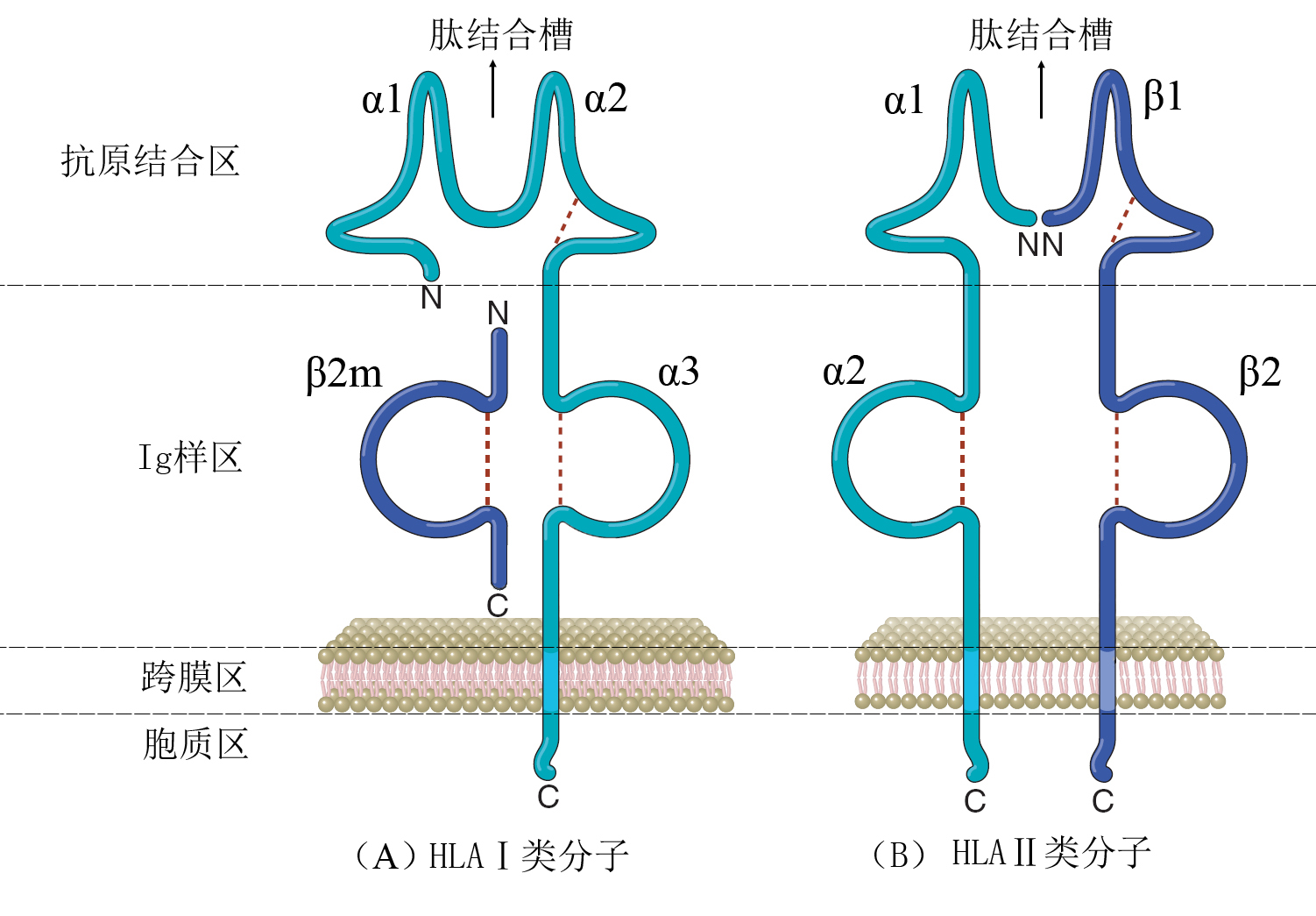 图 经典HLAⅠ类和Ⅱ类分子的结构
