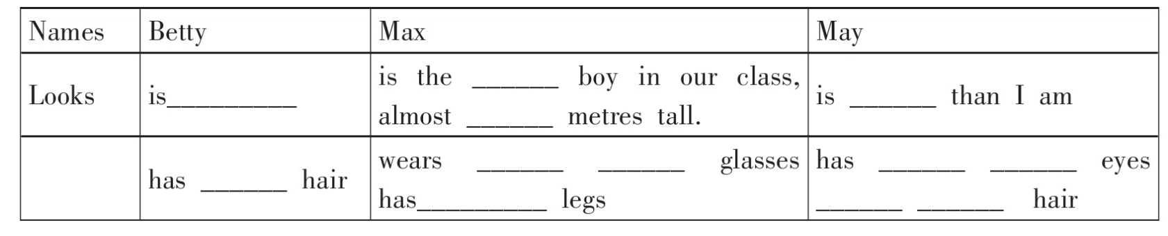 ① 获取与梳理Betty、Max和May的外貌信息并能运用恰当的词汇描述好朋友的外貌;