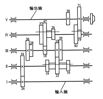 如上图所示为XA6132铣床外形图及其滑移齿轮变速机构图和主轴传动系统展开图。
