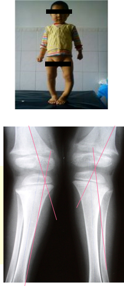 4.后遗症期 多见于2岁以后的儿童。因严重佝偻病,残留不同程度的骨骼畸形。无任何临床症状,血生化正常,X线检查骨骺端病变消失。