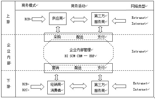 企业开展电子商务以提高企业的核心竞争力、增加利润为目的,因此,整个电子商务体系在功能上要满足企业的采购、生产、销售、管理和对外业务协作的需要,不仅要包括网络、计算机软硬件等,还需要和外界发生信息交流。