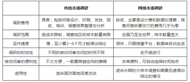 2.案例中所应用的网络市场调研和传统调研有哪些区别?