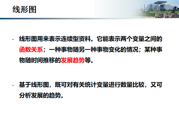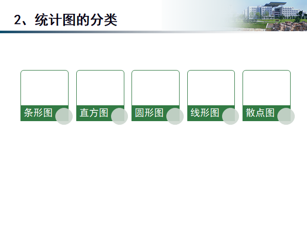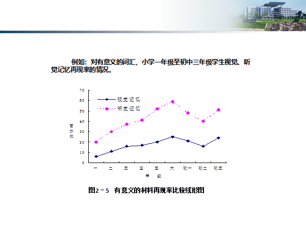 统计图是整理和呈现数据的另一种方法,它把研究变量与被说明事物之间的数量关系用图形表现,直观、形象地表达出事物的全貌及其数据的分布特征,使人一目了然,便于理解和记忆,印象深刻。