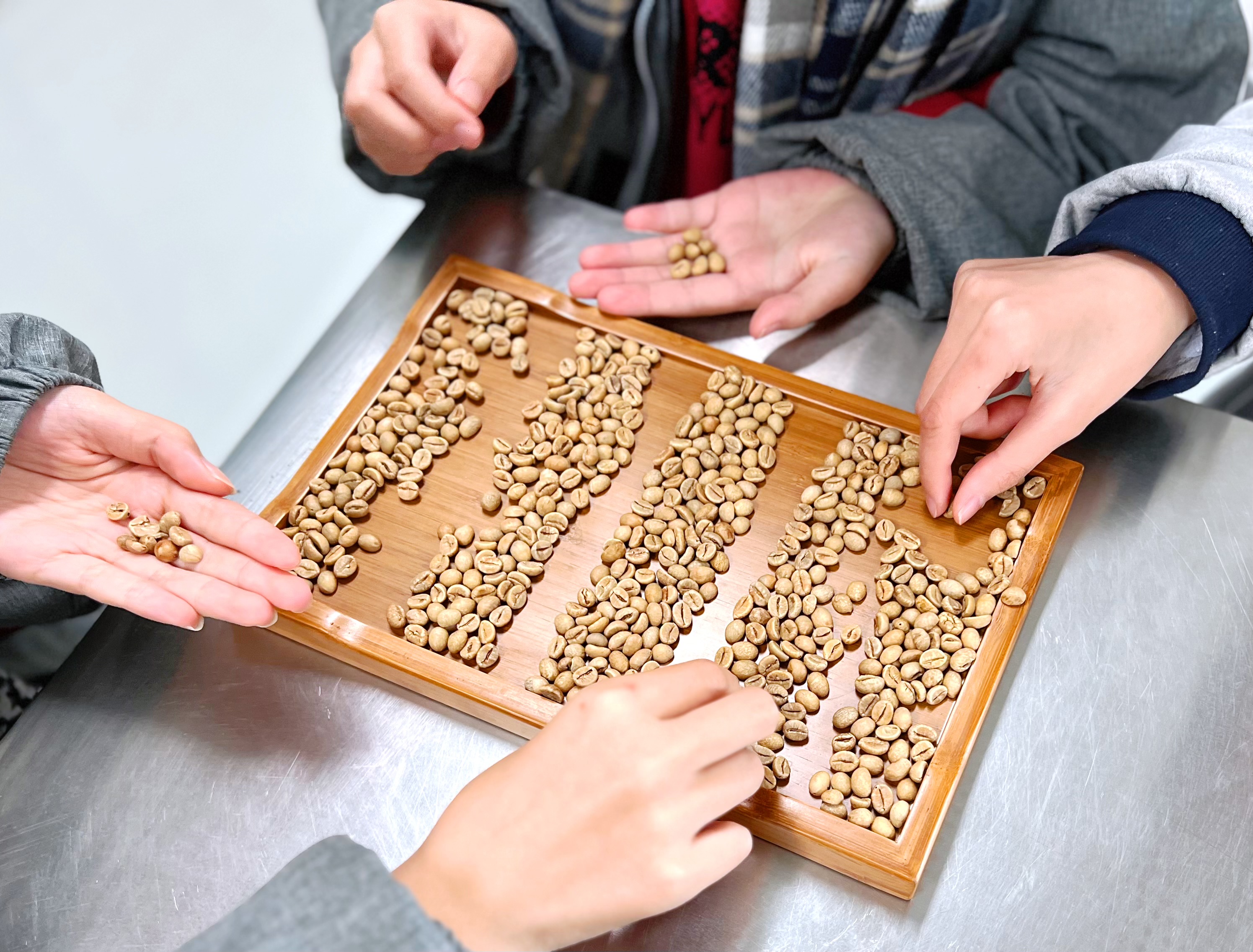 学习理论知识,观看相关的图片和视频,通过对咖啡豆的结构、分类,瑕疵豆的种类,咖啡生豆的鉴别方法等相关知识的学习,能区分咖啡豆的品质;通过咖啡豆的手选实践,准确辨别瑕疵豆。