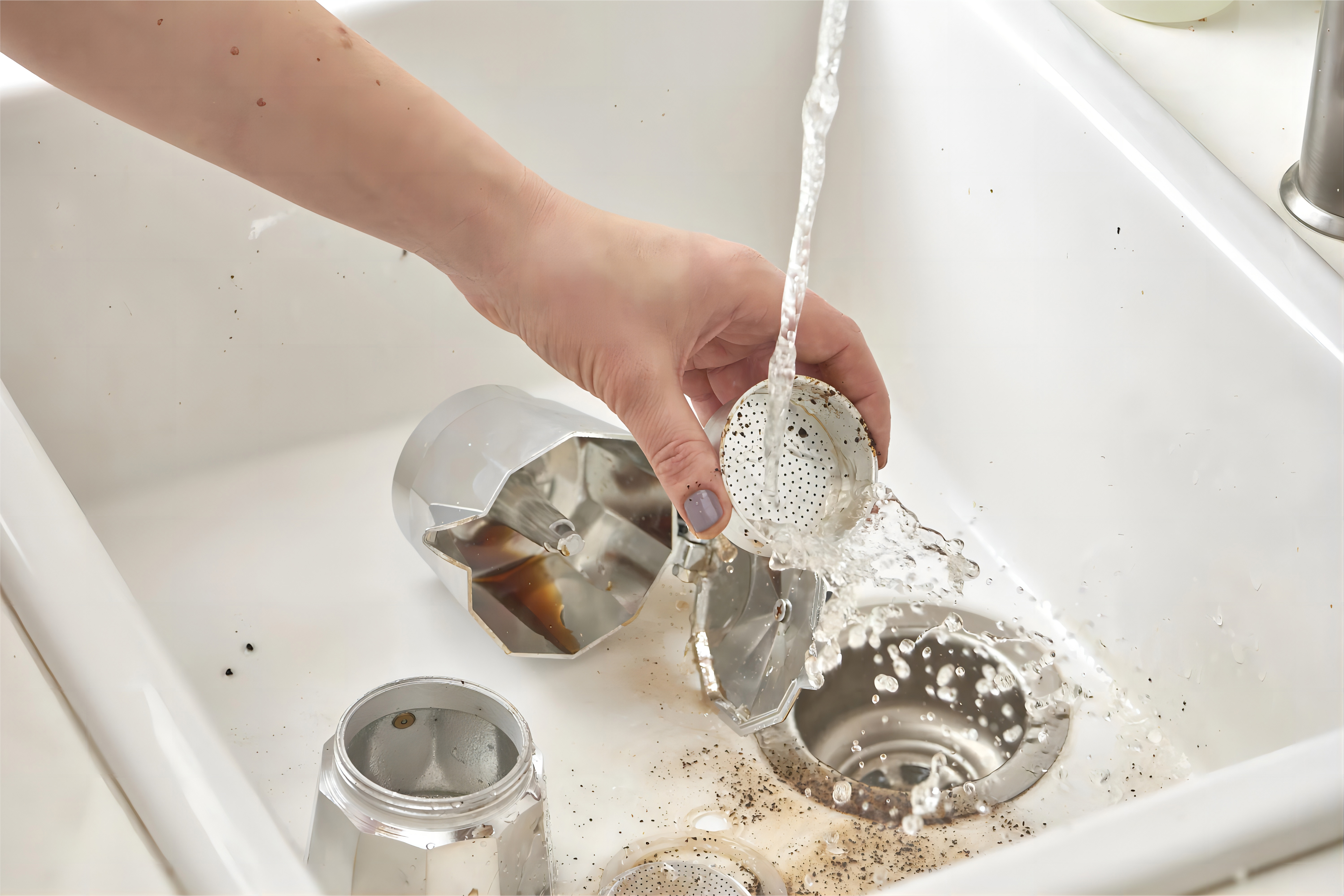 第一次使用摩卡壶,需要清洗壶身,用咖啡豆进行两到三次的萃取实验,实验所得咖啡需避免饮用。