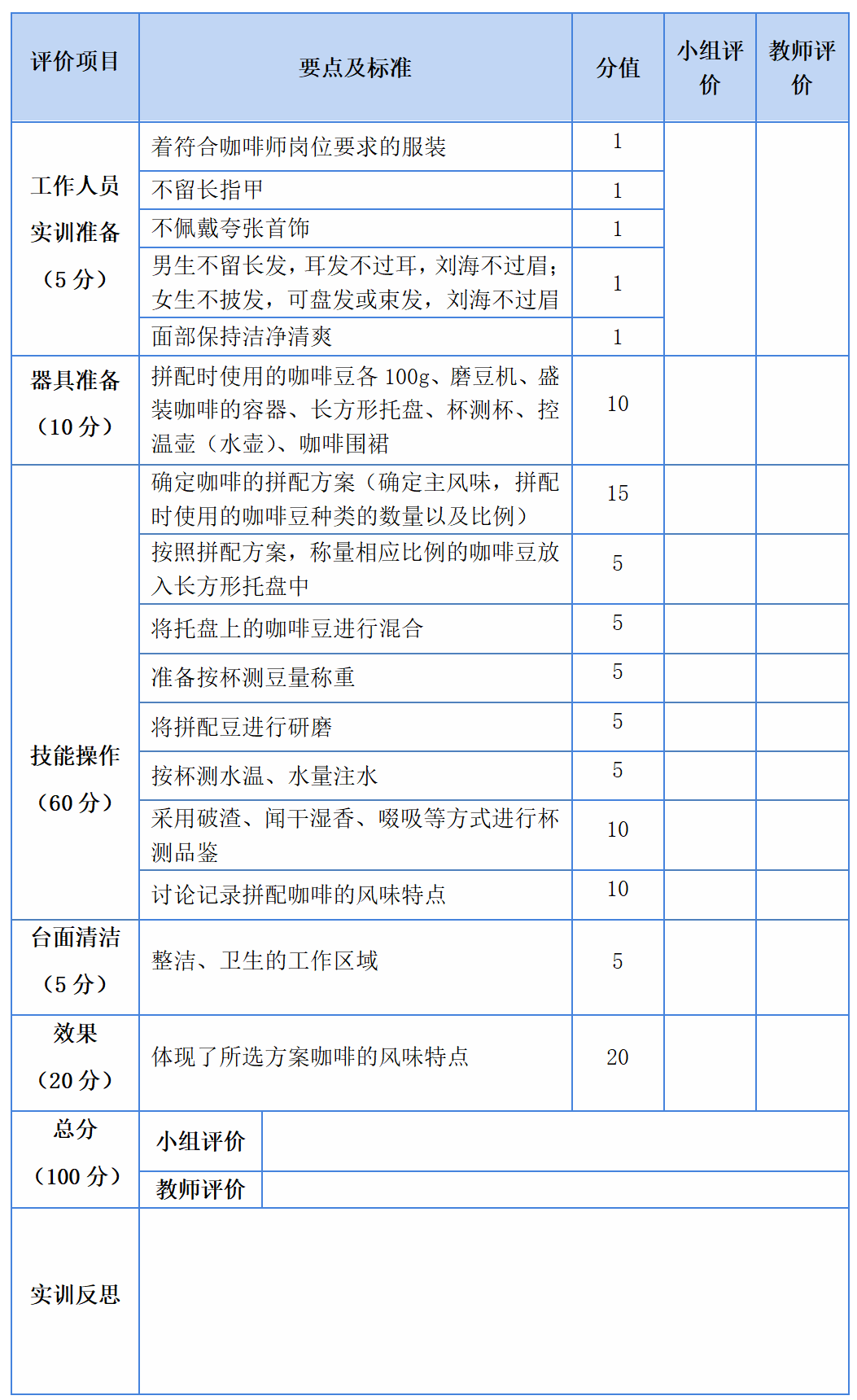 分小组进行咖啡豆的拼配练习,完成评价表2-2-2。