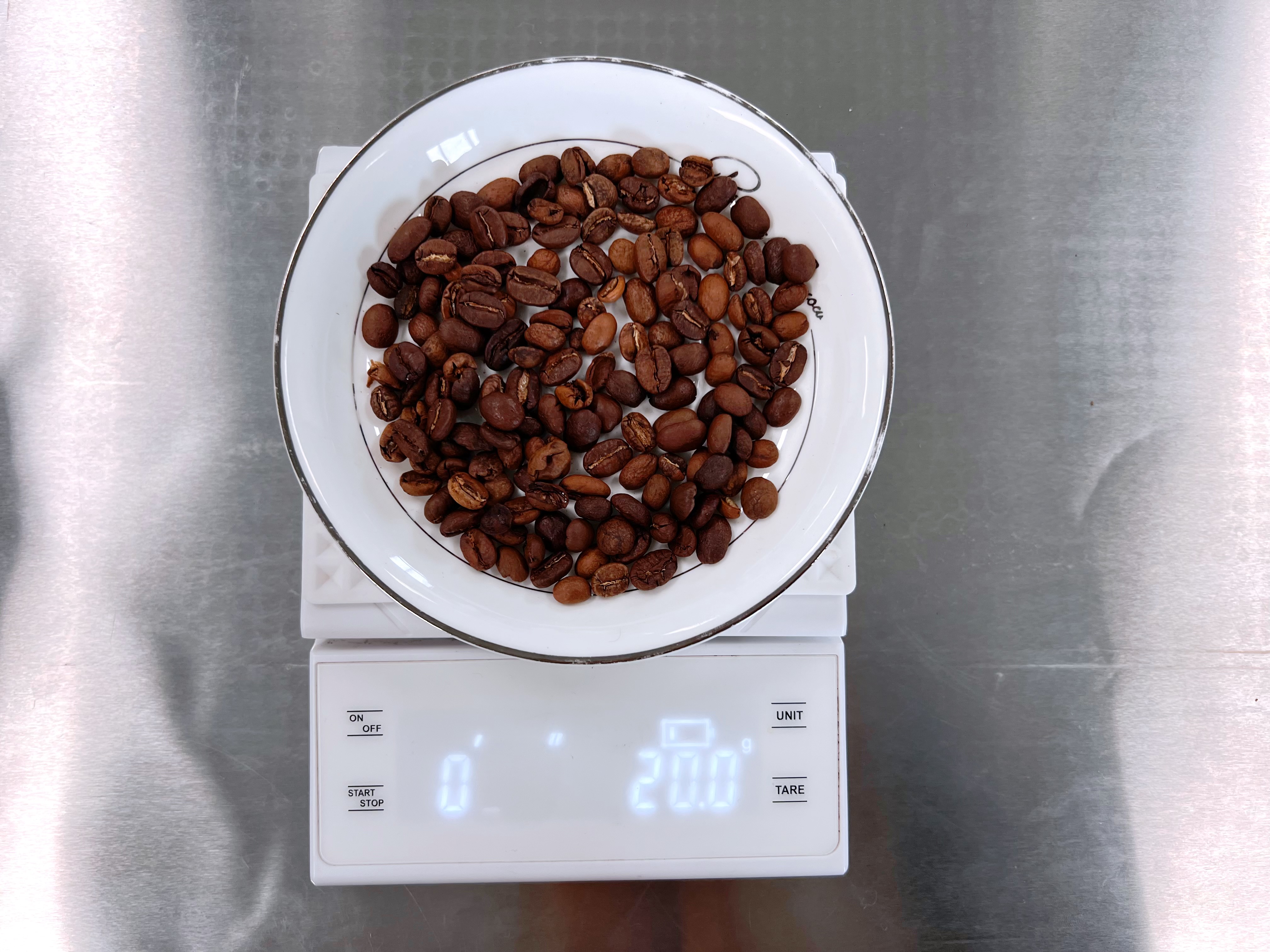步骤2:根据方案配比,确定每种咖啡豆的数量,进行称量,如图2-2-6所示。