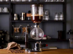 真空过滤通常有上下两个玻璃壶,上壶装取咖啡粉,下壶装热水。其萃取原理是通过加热下方玻璃壶,利用壶内的气压变化,下壶的水往上与上壶的咖啡粉融合浸泡,萃取出咖啡里的可溶滋味物。真空过滤适合用于冲煮单品咖啡。