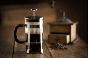 在使用法式滤压壶制作咖啡时,如图3-2-1所示,采用浸泡的方式进行萃取,需要的萃取时间更长,所以通常的做法是使用较粗的研磨度,以此来避免过度萃取产生苦味。