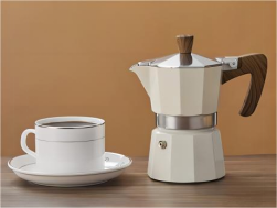 代表器具为摩卡壶、爱乐压。摩卡壶的原理是以高温蒸气萃取咖啡。萃取咖啡时,随着壶内温度升高、压力增加,下方的水最先被加热,转化为蒸汽,同时在内部产生压力接触咖啡粉,所以中细研磨度的咖啡粉,更能与水流和蒸汽充分接触,从而制作出味道浓郁、口感醇厚的意式浓缩咖啡。如图3-3-4所示。