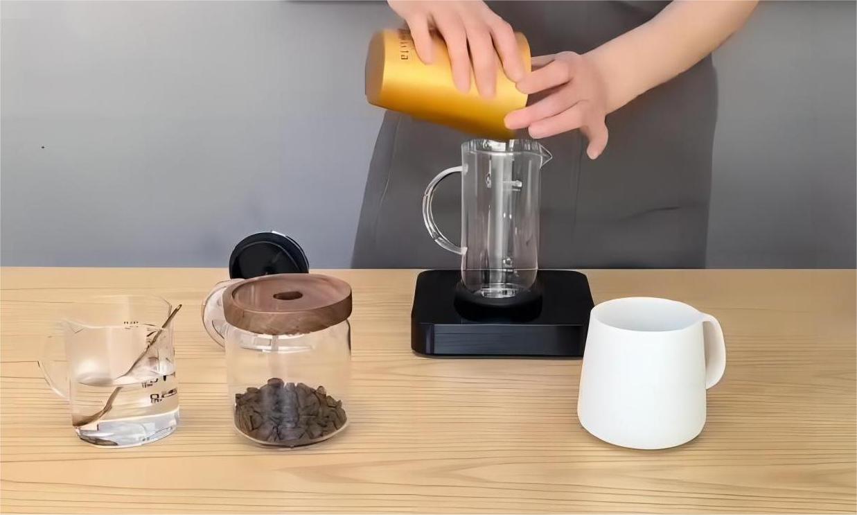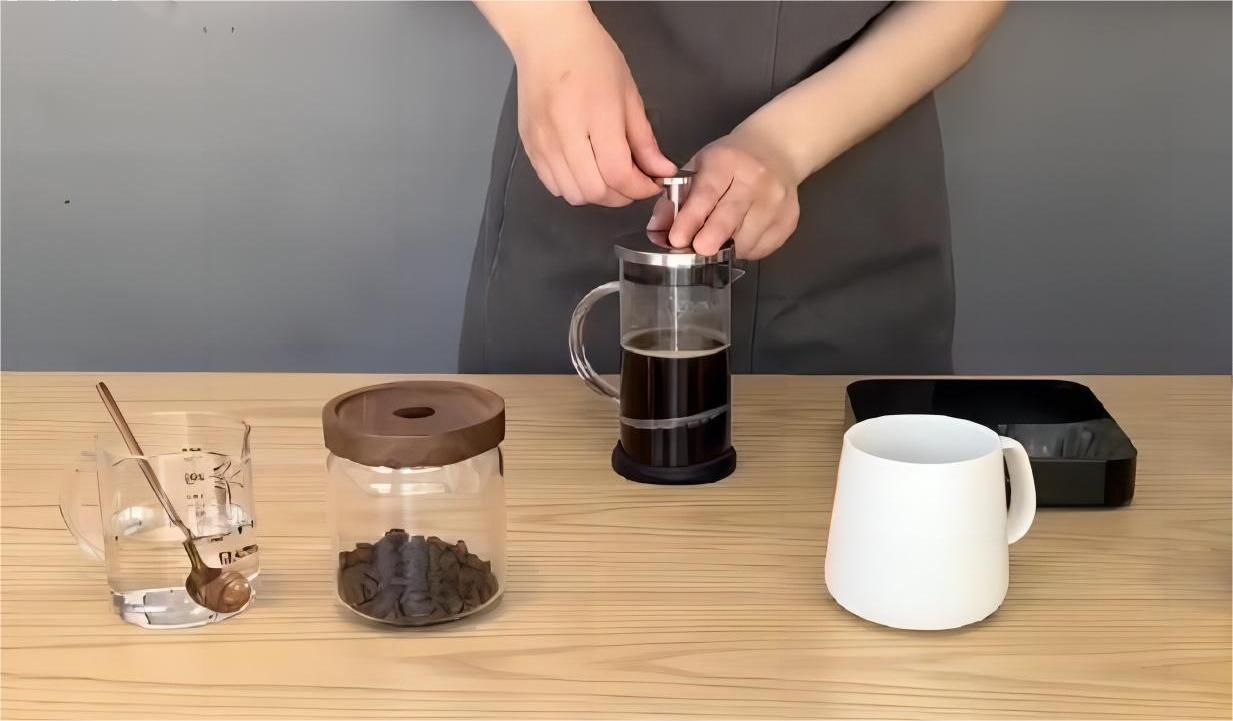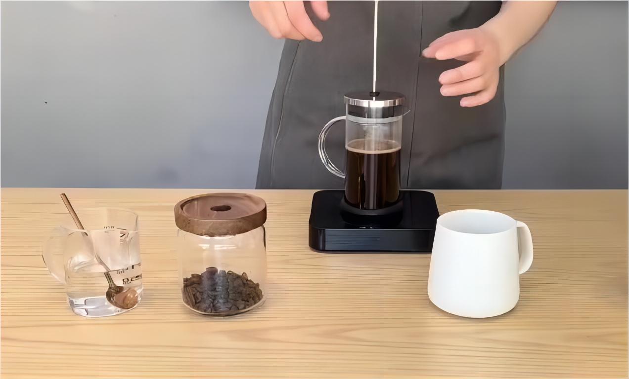 使用法式滤压壶冲煮咖啡。