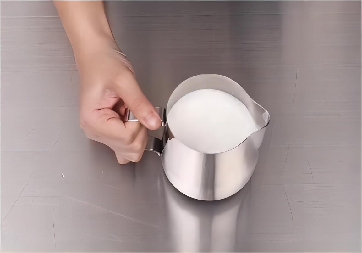 奶泡打发完成后,为使奶泡更细腻,一般会采用以下三种方法操作。