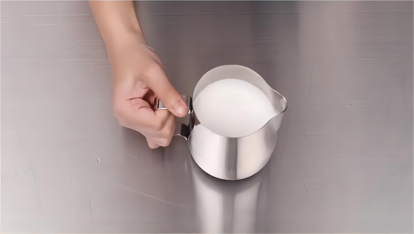 步骤2:将牛奶倒入拉花缸中,如图4-4-7。