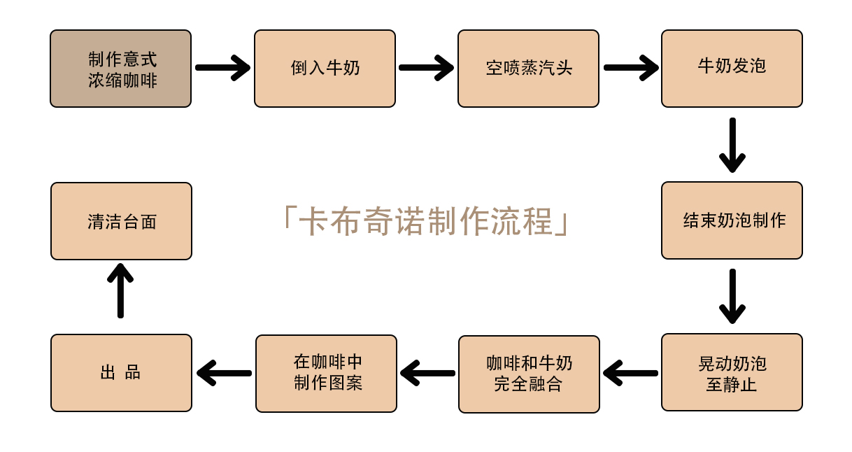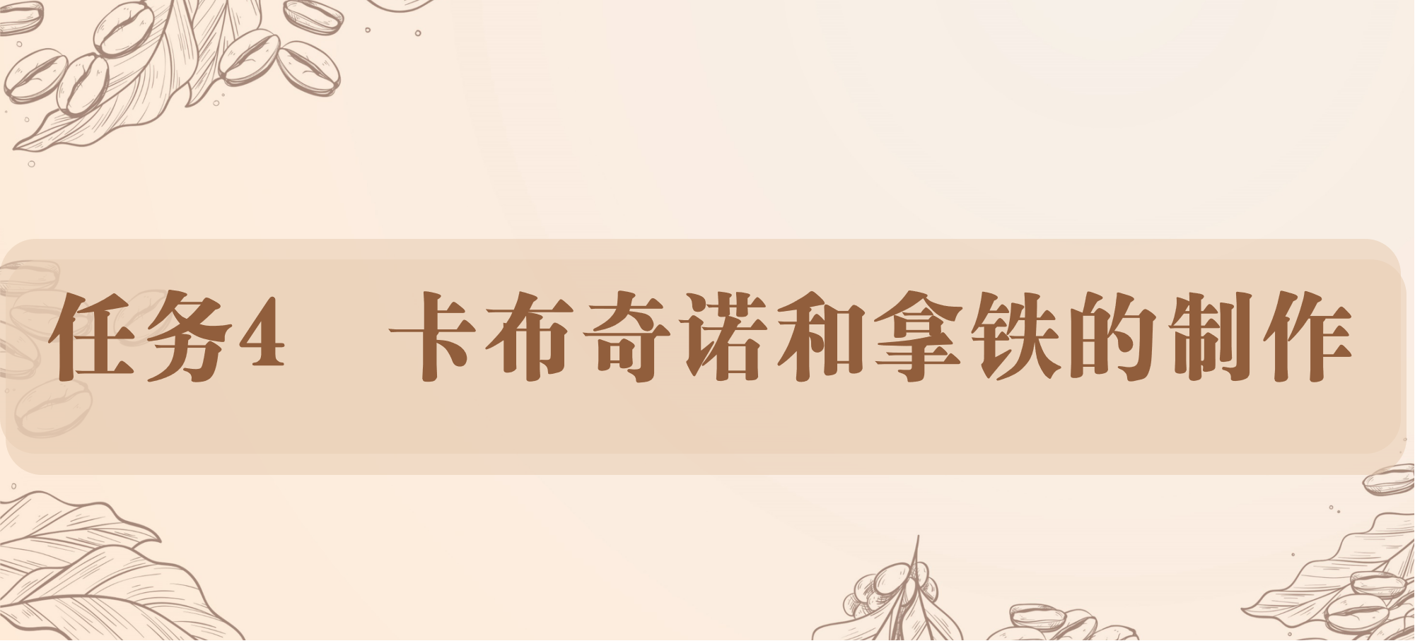 学习理论知识,观看相关的图片和视频,通过对卡布奇诺的含义、起源、分类与制作技巧,拿铁的含义与起源等知识的学习,了解卡布奇诺和拿铁的制作方法与区别;通过制作卡布奇诺的实践,掌握卡布奇诺的制作流程与技巧,并反复练习制作一杯合格的卡布奇诺咖啡。