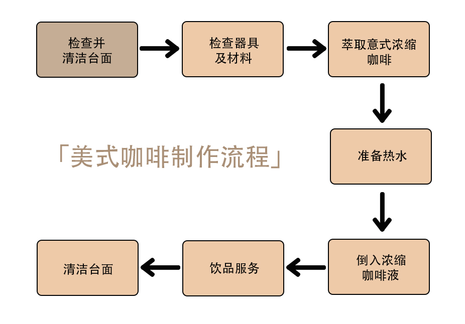 学习理论知识,观看相关的图片和视频,通过对美式咖啡的含义、起源、分类与制作技巧等知识的学习,了解美式咖啡的特点及其与手冲咖啡的区别;通过制作热美式咖啡的实践,掌握美式咖啡的制作流程与技巧,并通过练习合格出品。