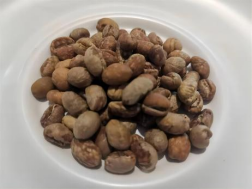 此阶段至一爆前,由于豆内水分大量蒸发,豆表会出现褶皱或黑色斑纹,此为正常现象,如图2-1-6所示。需要注意的是,催火的操作只应当在烘焙的前期进行,并且要制造足够的热冲力。如果等到第三、第四阶段发现火力不够再补以大火,此时豆体已经变得非常脆,再受到高温的冲击极有可能碳化变苦,徒增咖啡豆的烟熏焦苦之味。