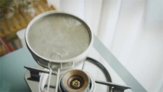 步骤1:取50g云南豆生豆,将生豆放入手网中,小火加热,不断摇晃手网,使咖啡豆均匀受热,如图2-1-18、2-1-19所示。